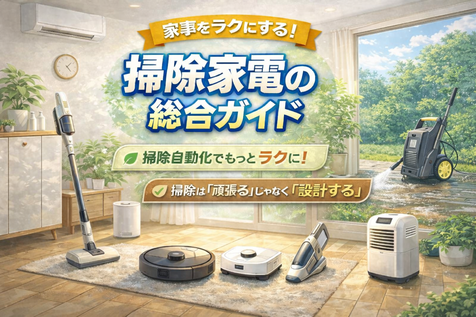 この記事では、目的別に掃除家電を整理しながら、