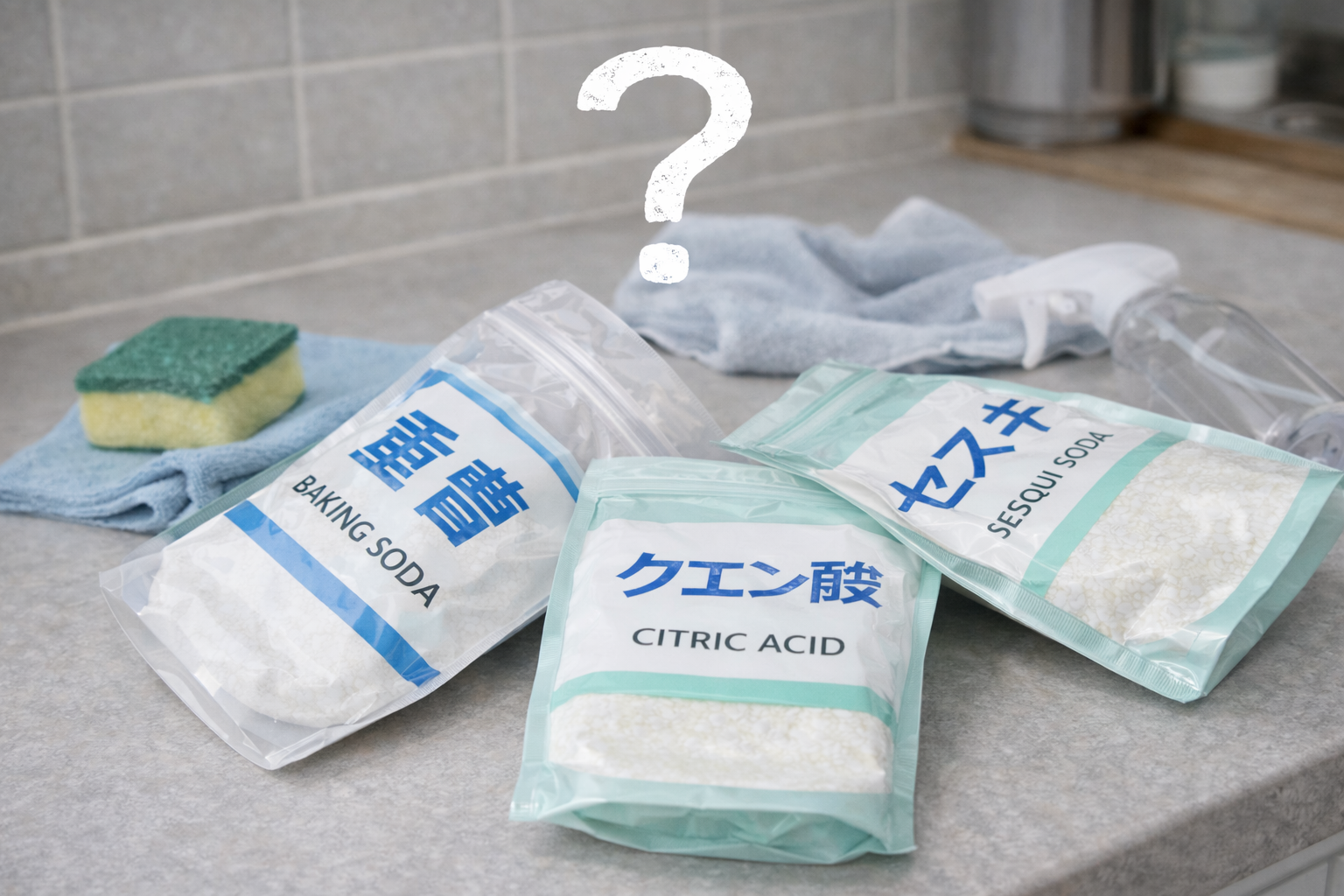 ▶ 重曹・クエン酸・セスキ・酸素系漂白剤の使い分け完全ガイド